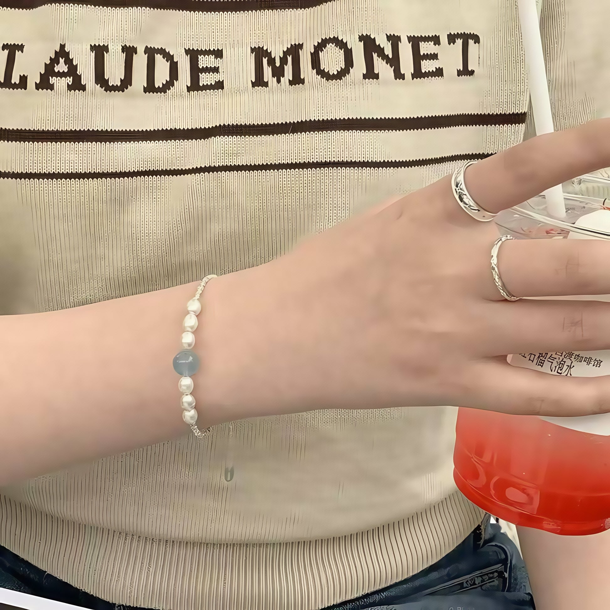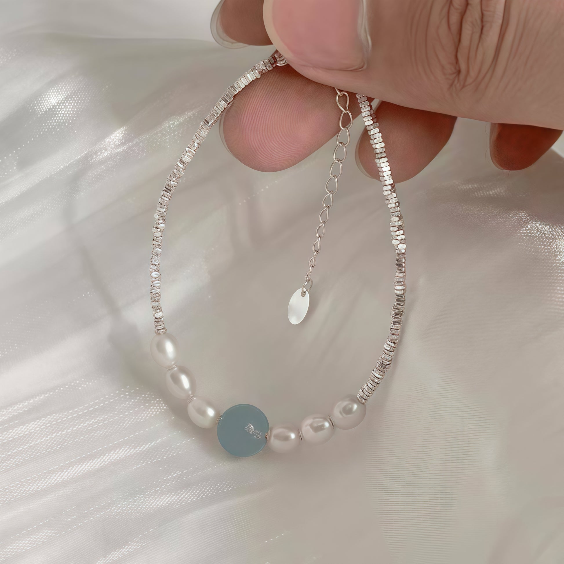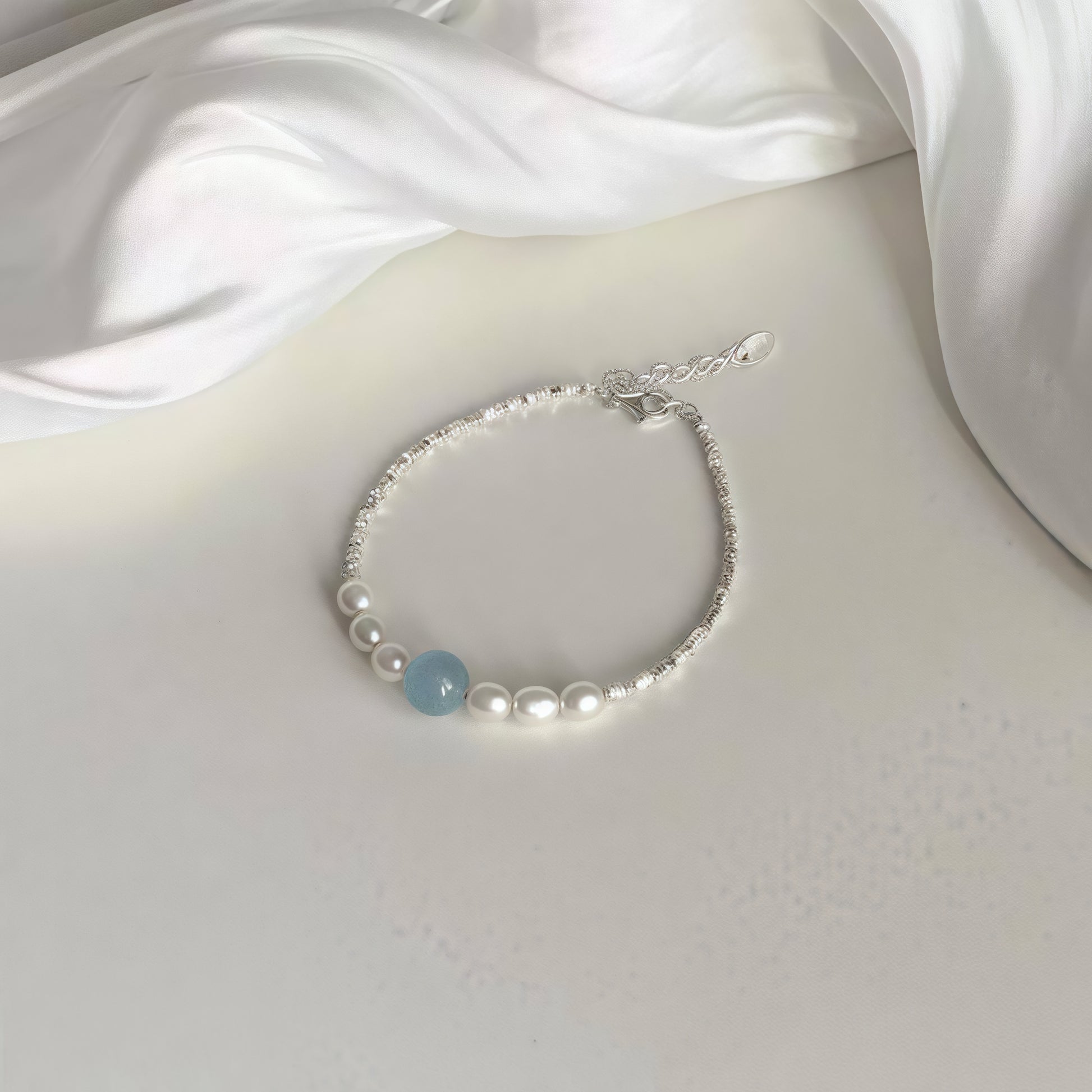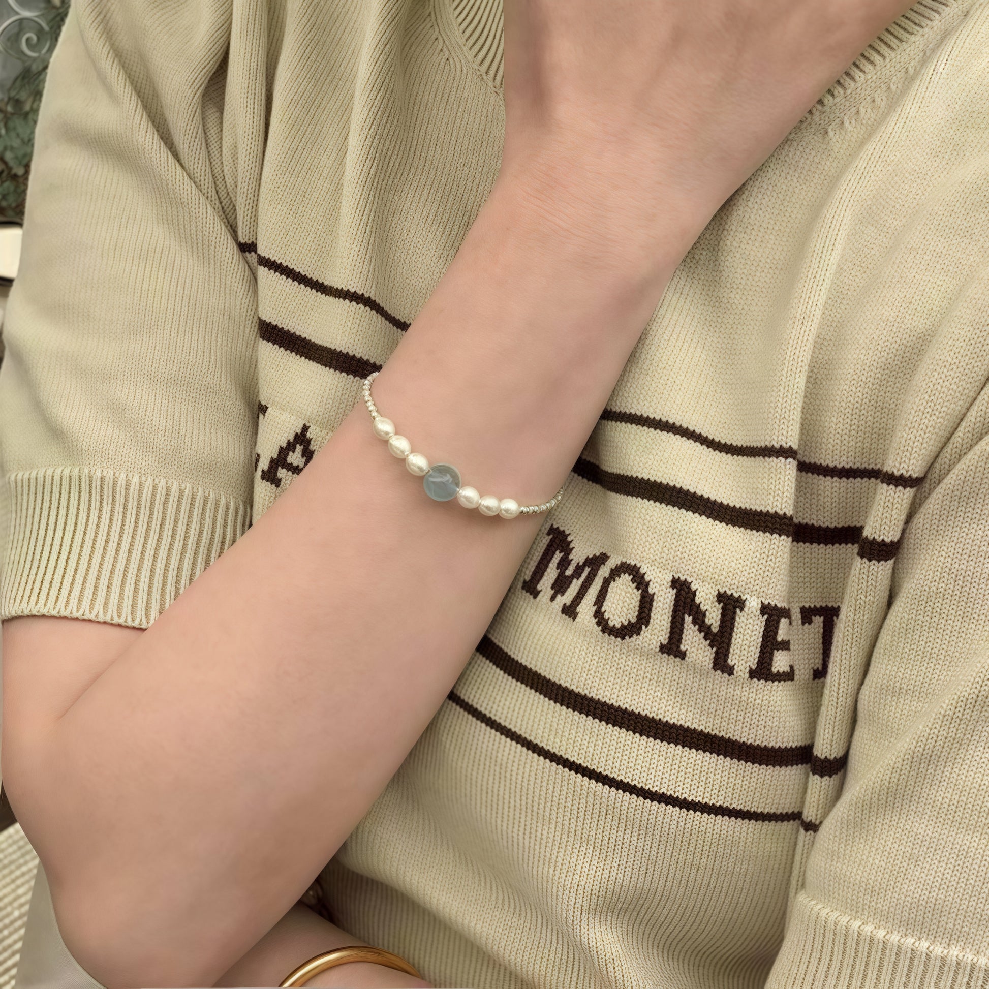 925 silver bracelet "Summer of Yunbing" pearl sea blue silver bracelet Chinese style design jewelry