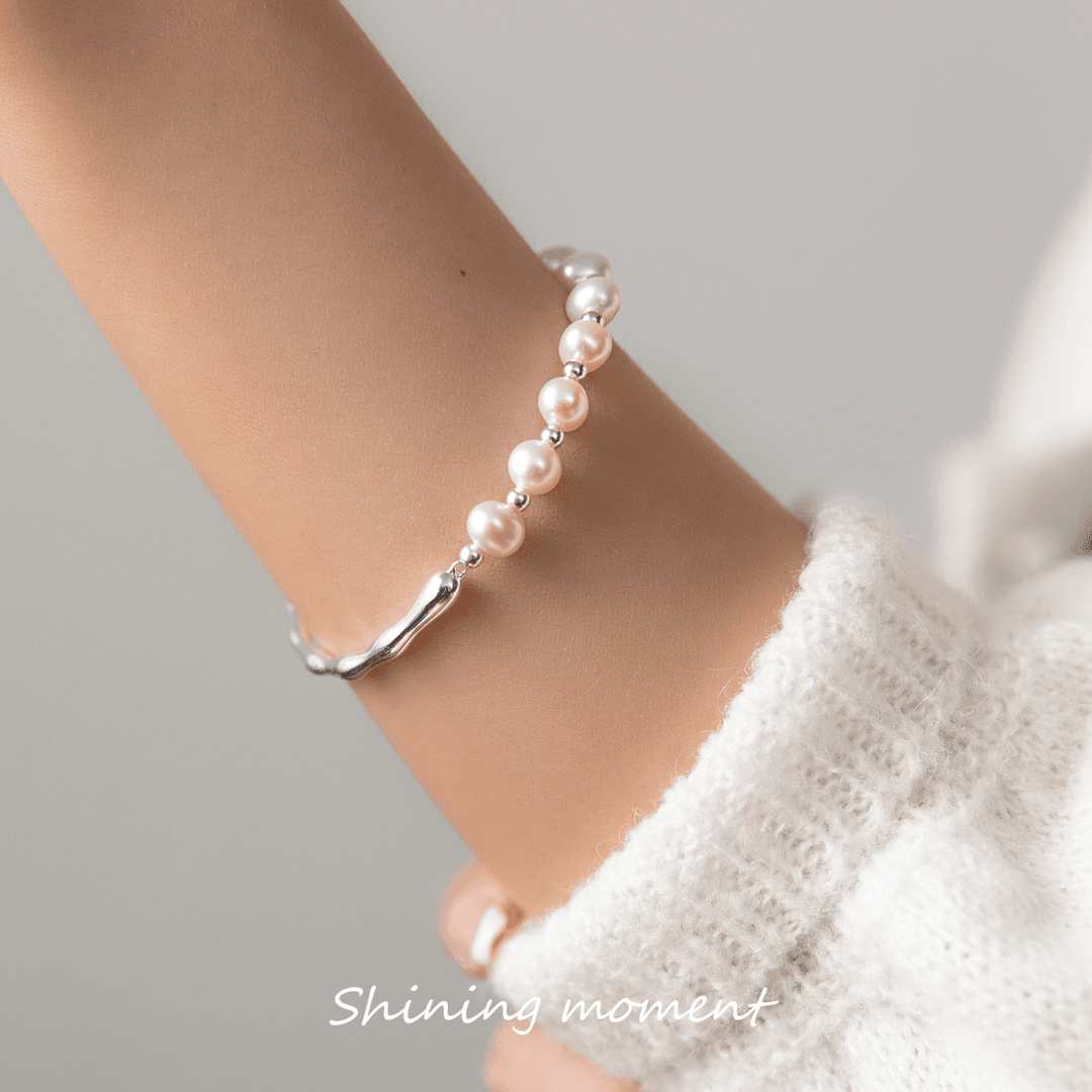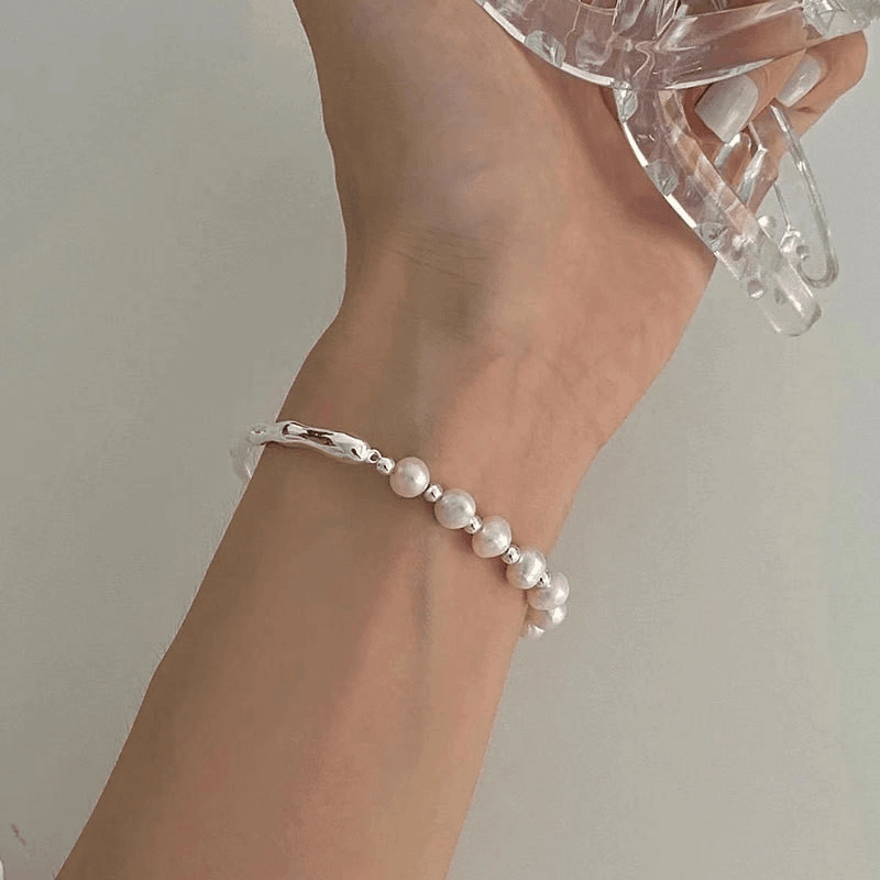 925 silver bracelet half bracelet half chain bead bracelet simple tree branch wave hand jewelry
