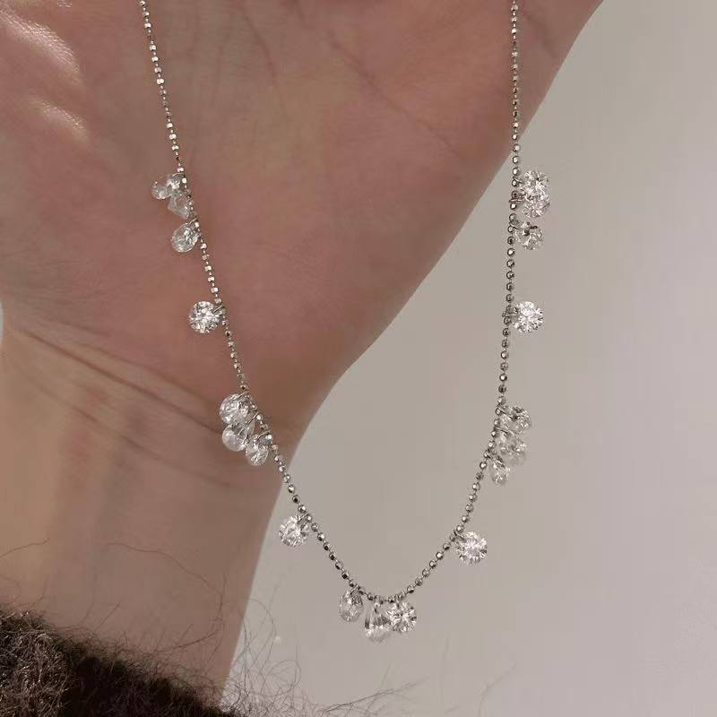 925 silver "Bright Galaxy" necklace super flash high carbon diamond smart cool clavicle chain