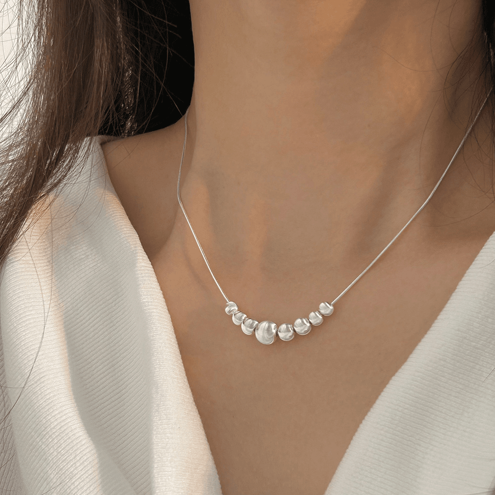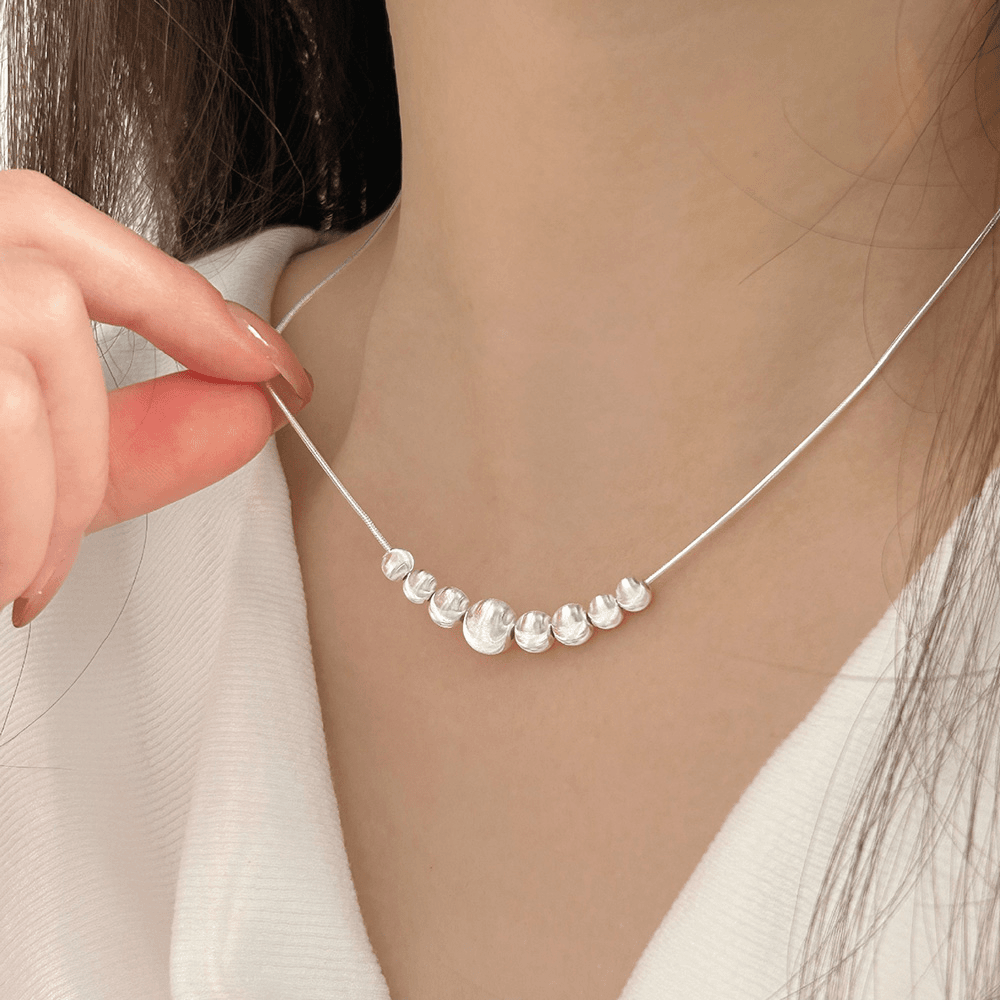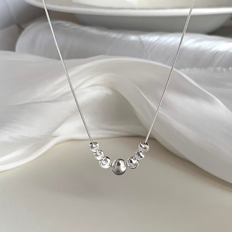 925 silver gradient cat's eye silver bead necklace design Korean minimalist cold style clavicle necklace
