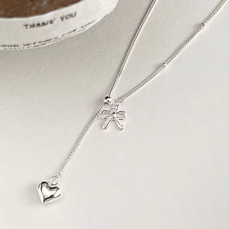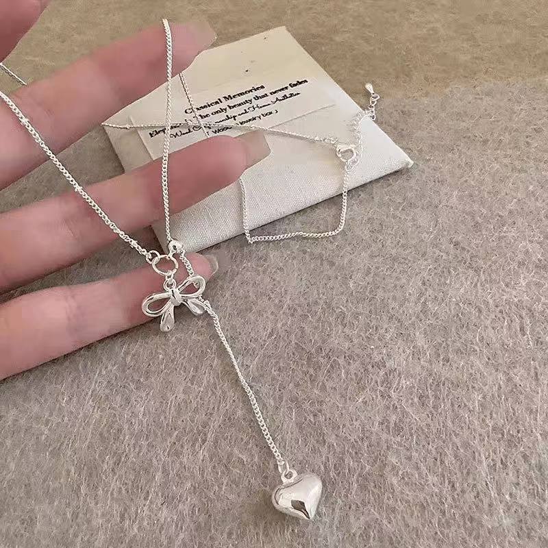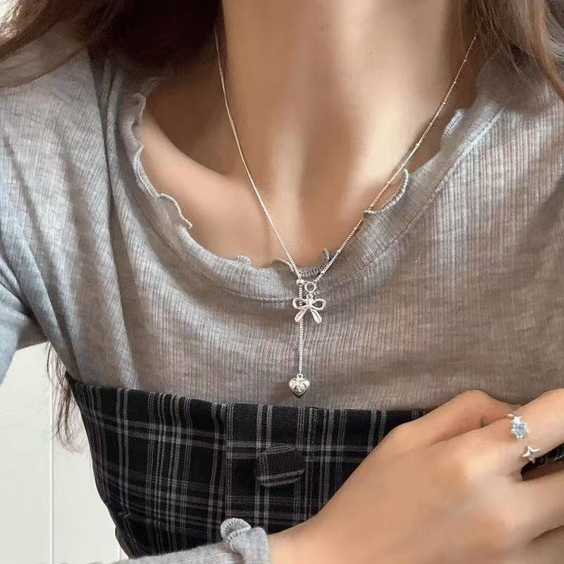 925 silver Korean style pull-out bow tassel necklace 2025 new style simple light luxury versatile niche high-end