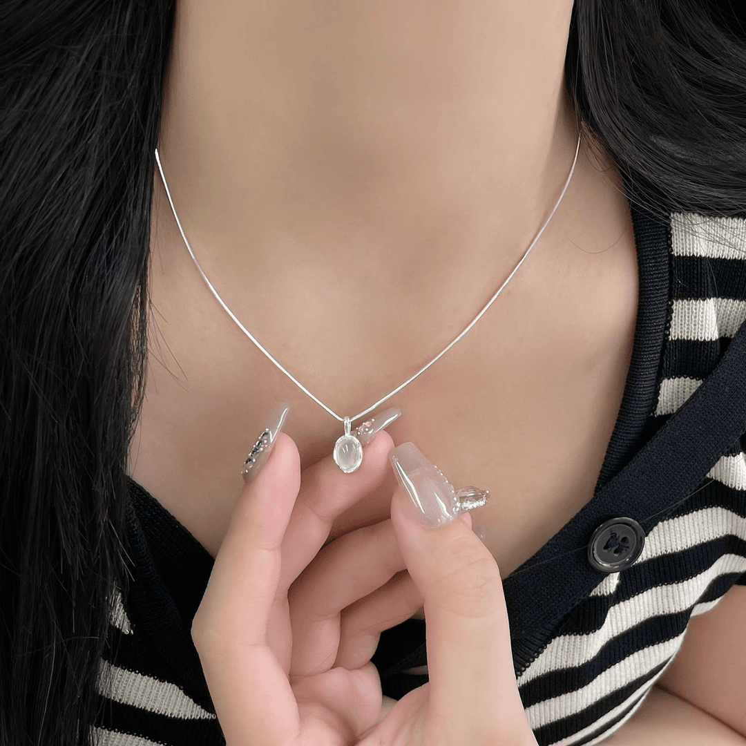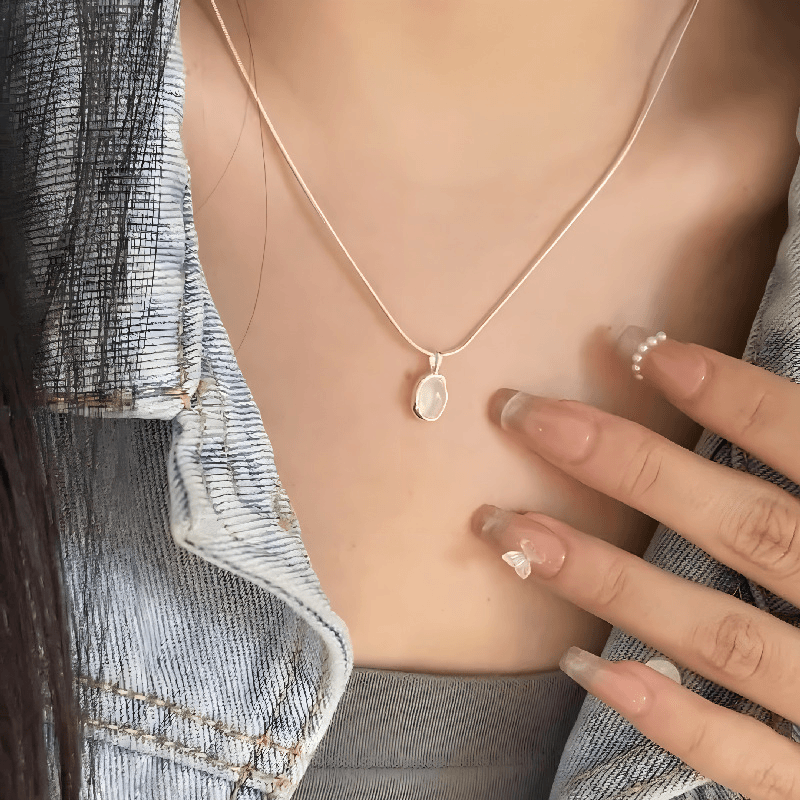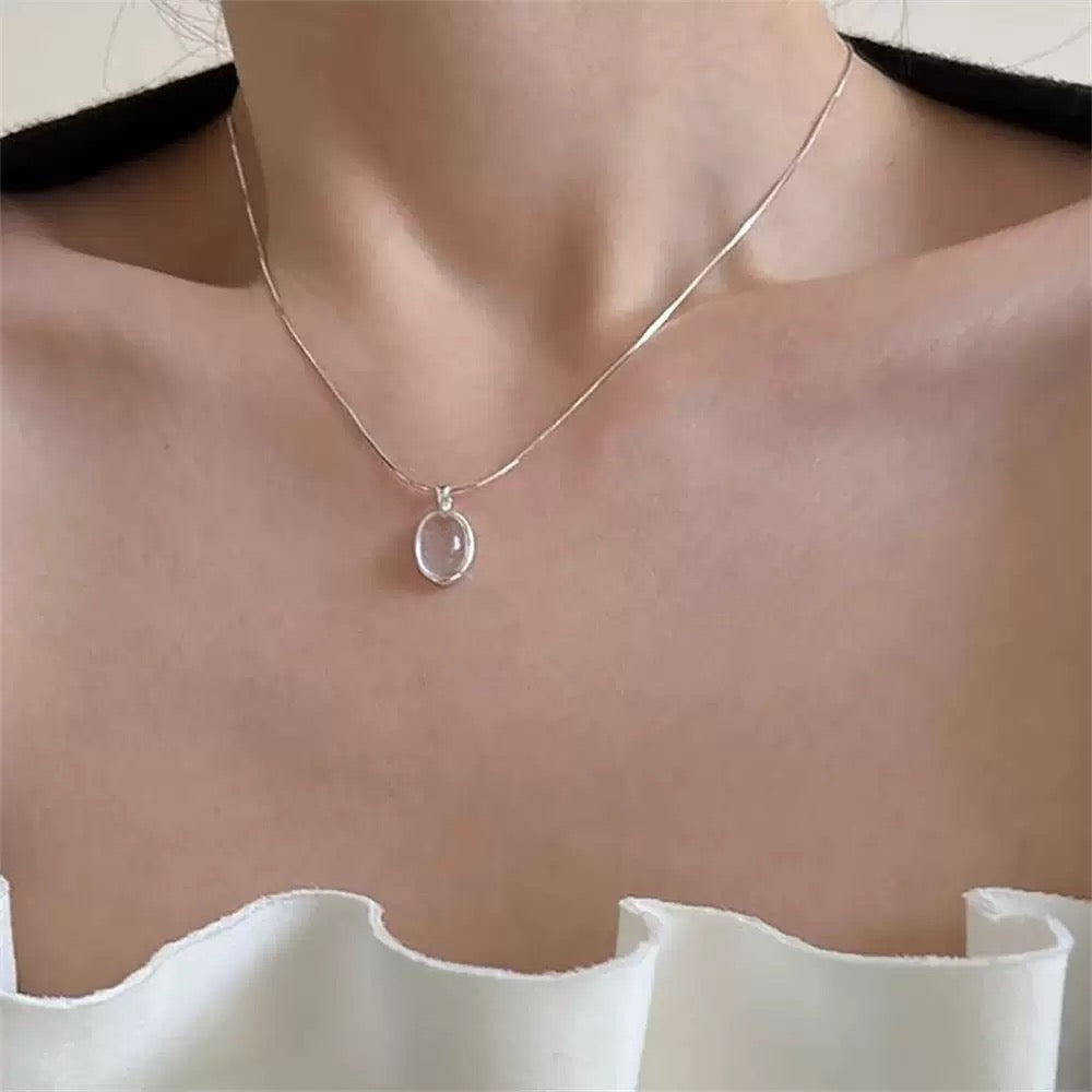 925 silver oval jade necklace niche design Korean version ins style new clavicle chain