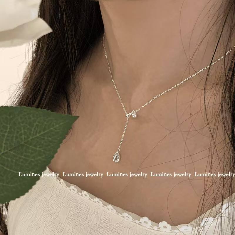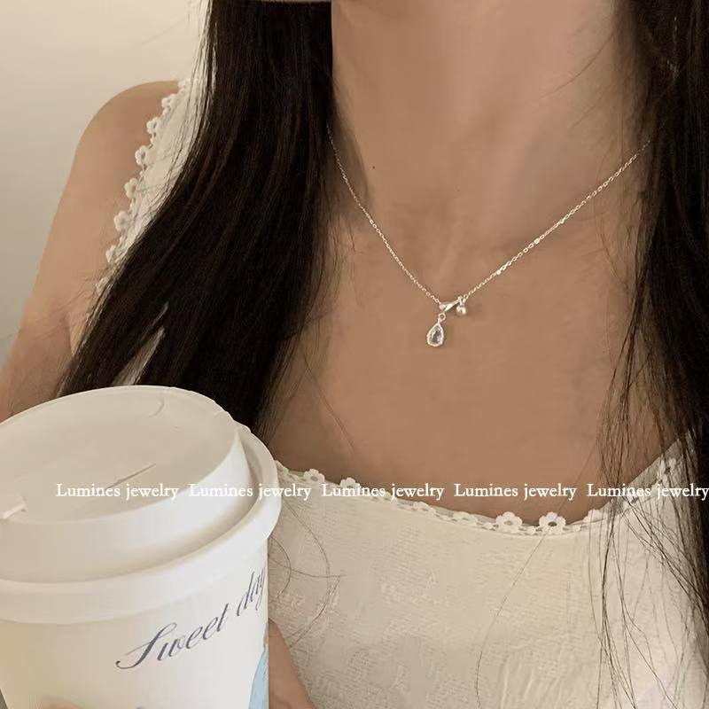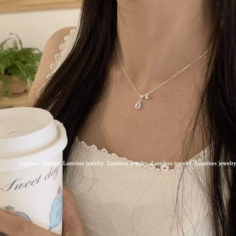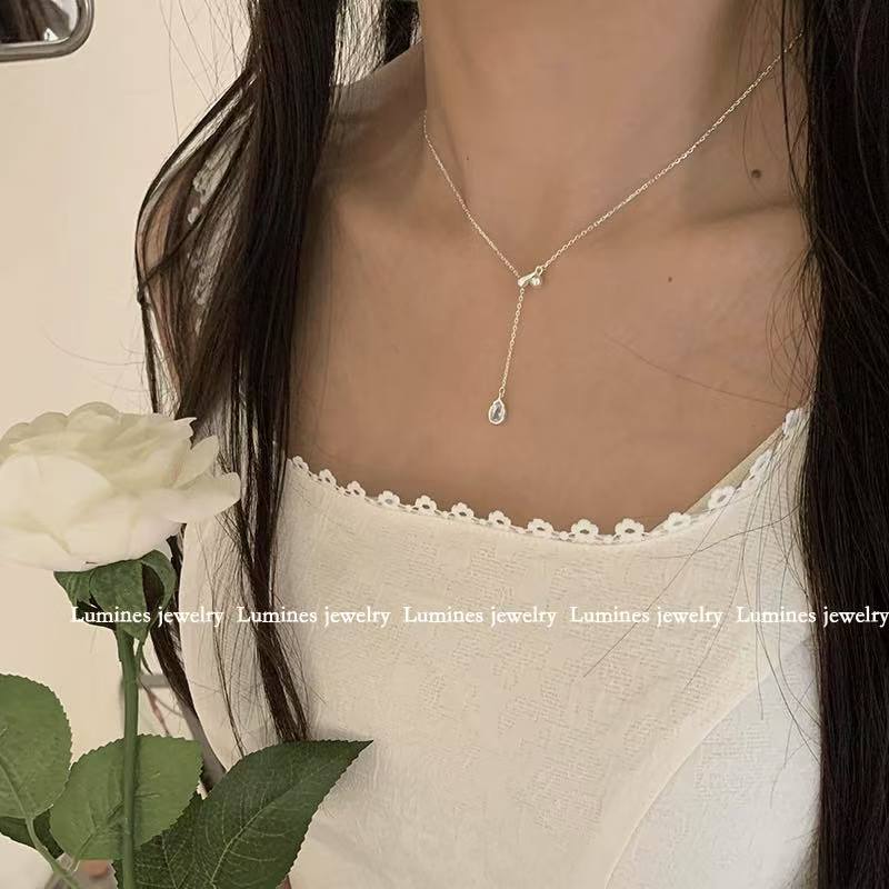 925 silver pull-out blue tear necklace cool and high-end clavicle necklace