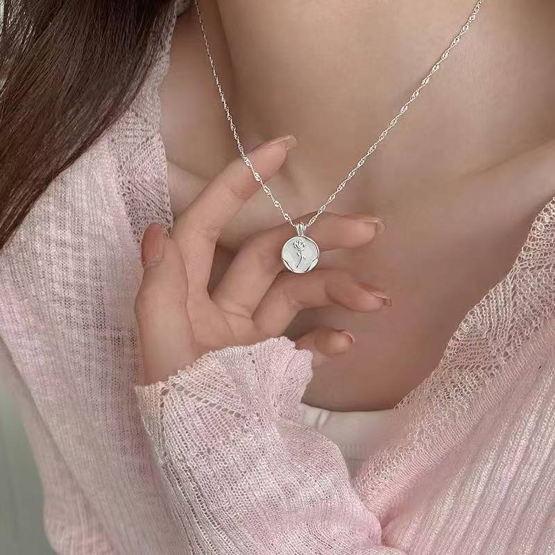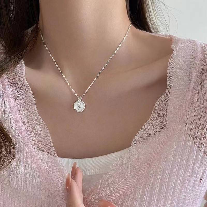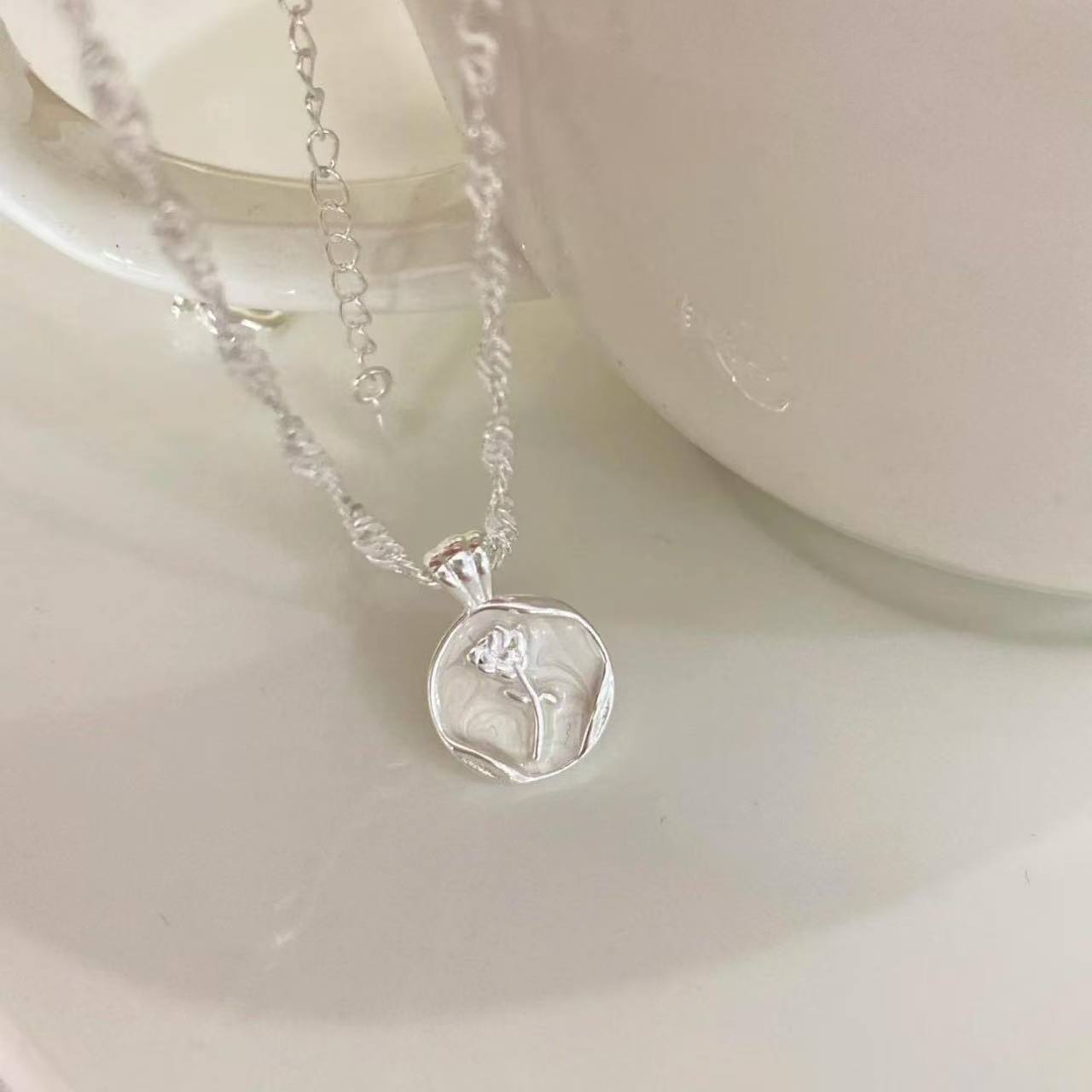 925 silver rose pendant necklace female clavicle chain temperament light luxury simple high-end ins niche design versatile