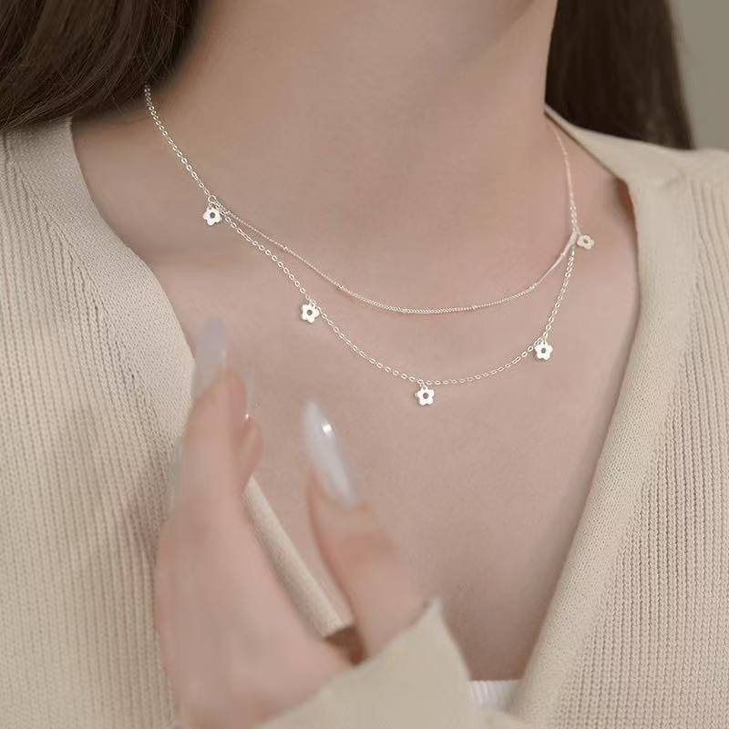 925 silver S925 sterling silver sweet flower necklace for women high-end luxury literary gentle luxury ladies