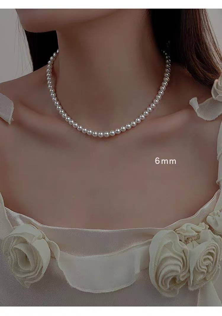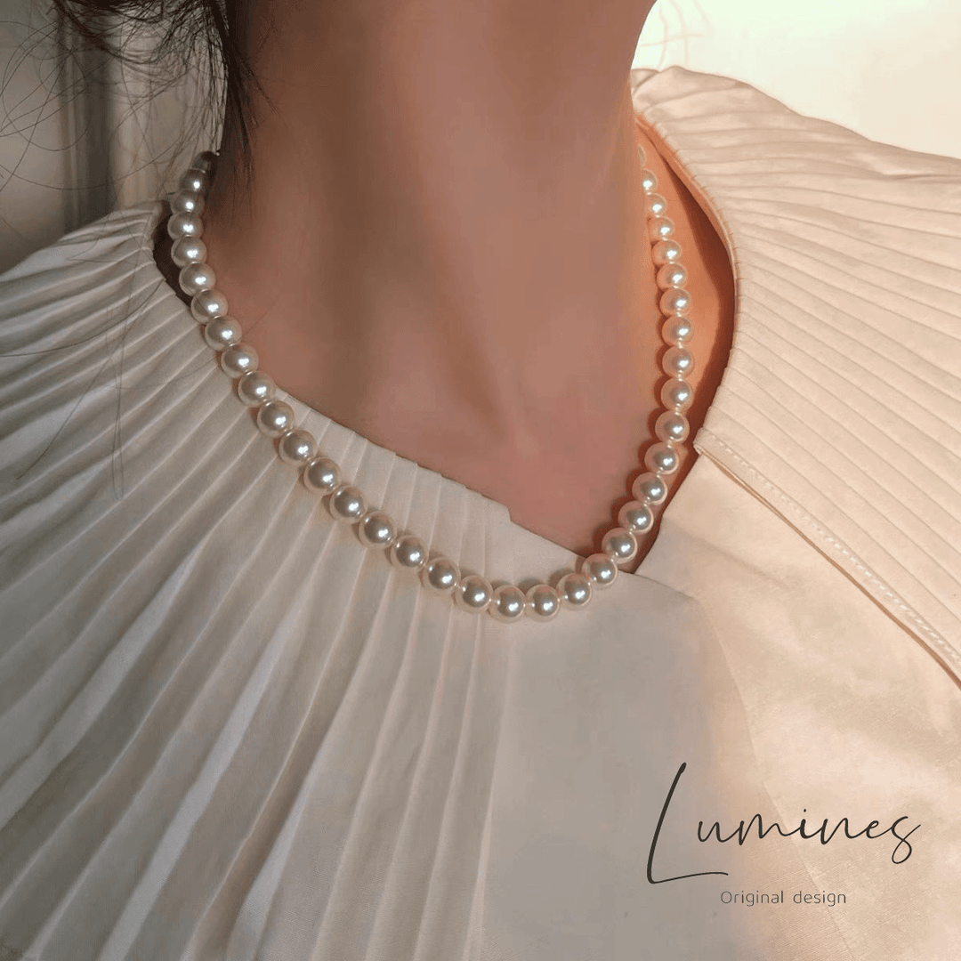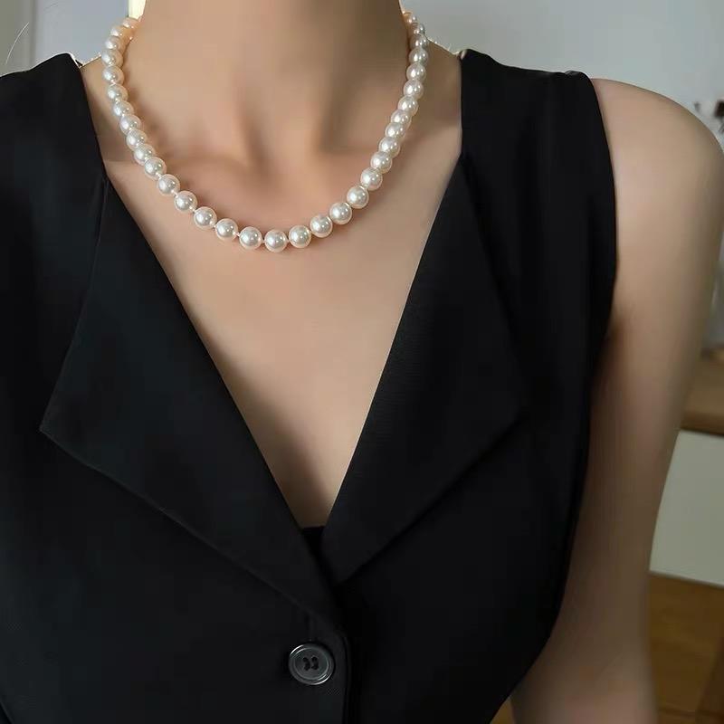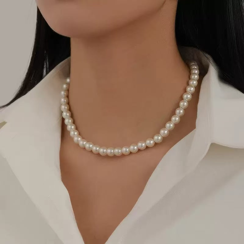 Copper alloy imitation pearl necklace Pearl necklace round highlight niche high-end sweater chain