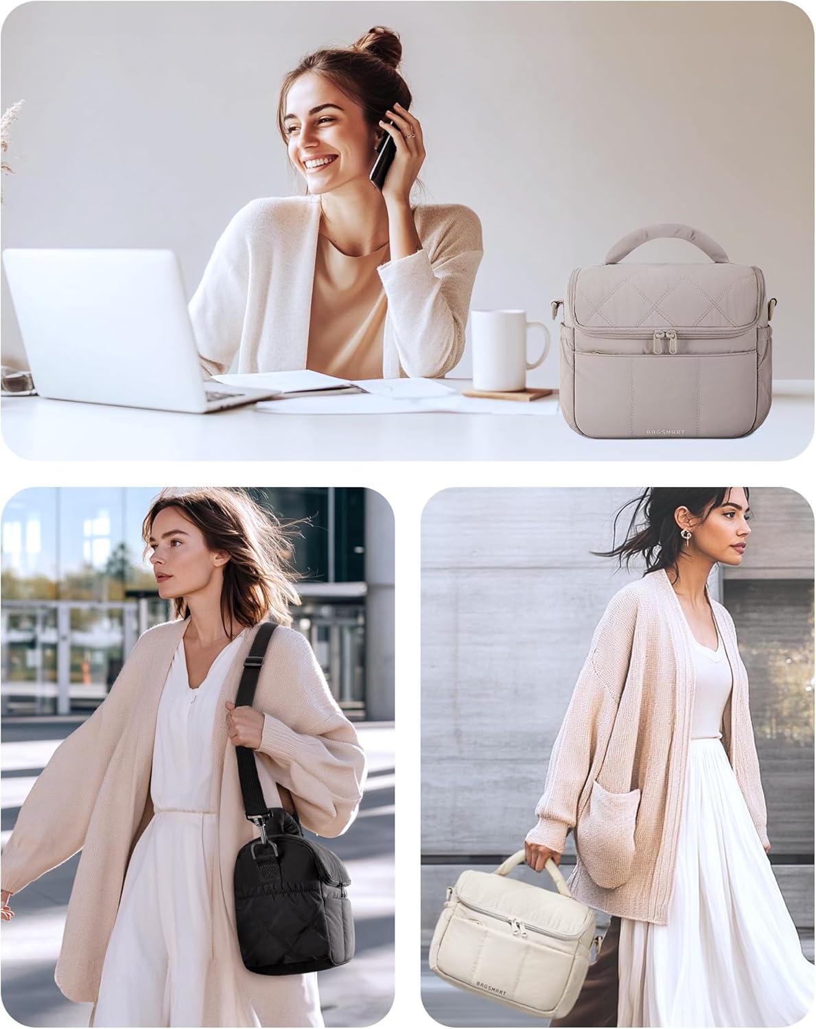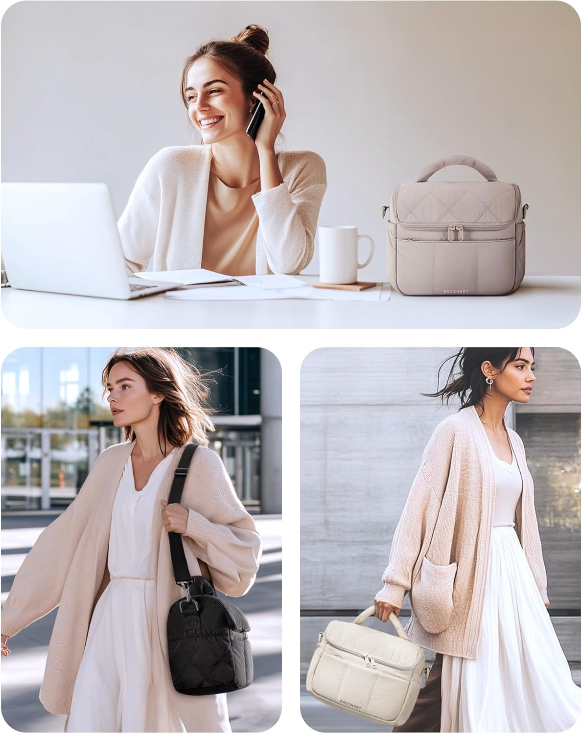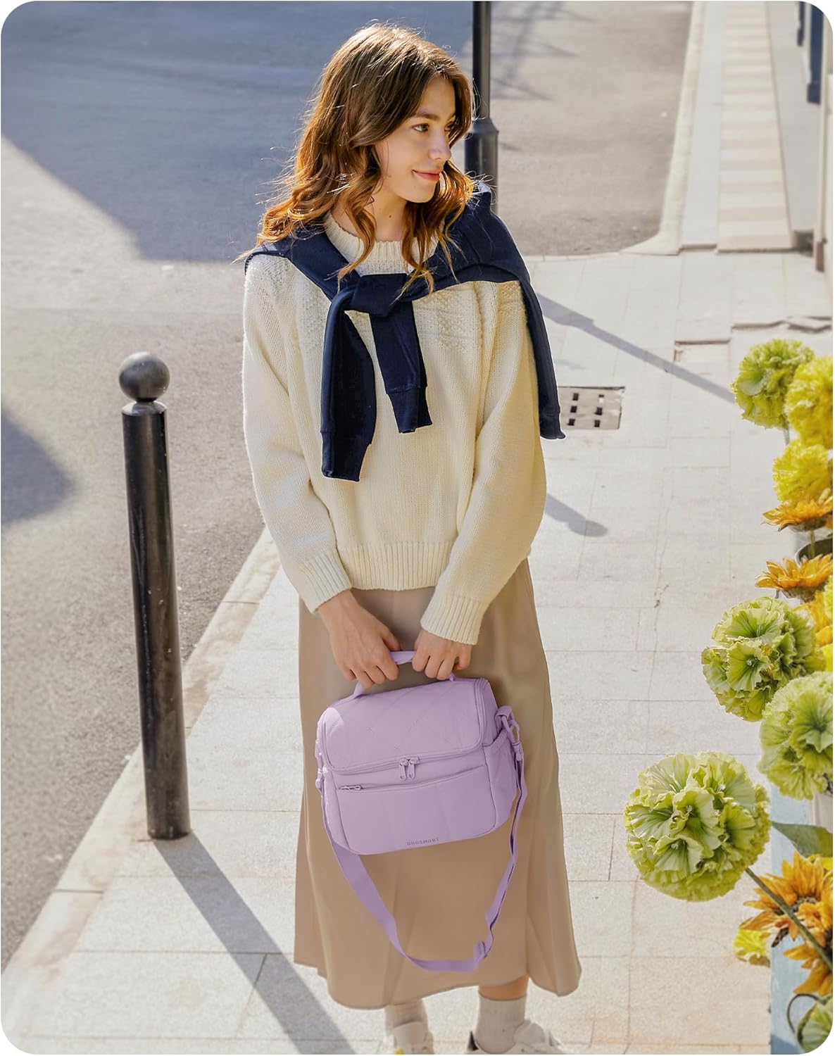 FYsuper Lunch Bag Women, Double Deck Insulated Lunch Box, Quilted Puffer Lunch Tote, Leakproof, Durable & Reusable Large Lunch Cooler