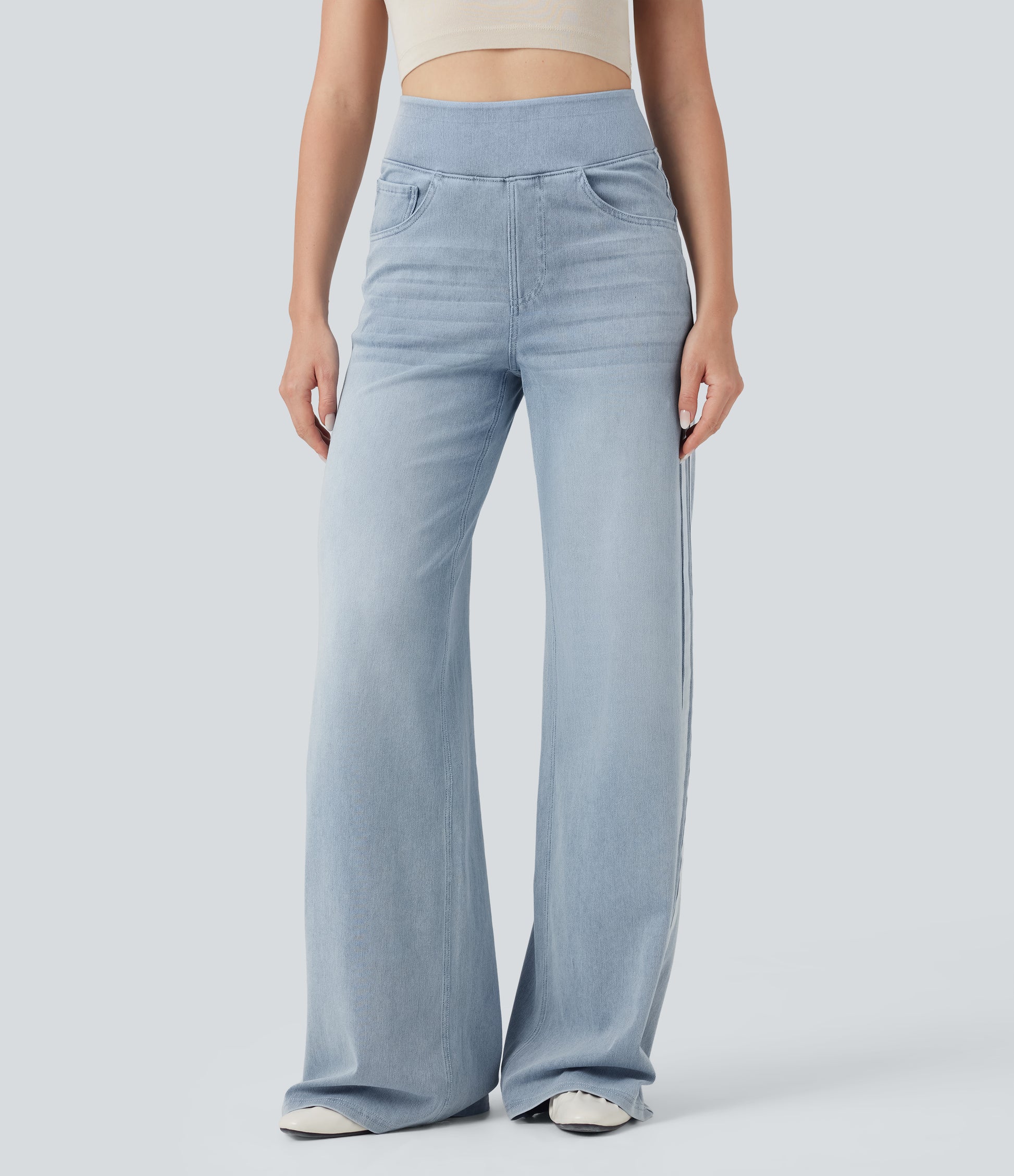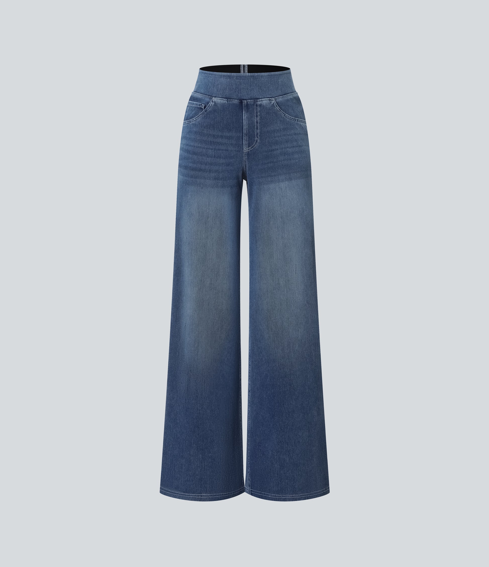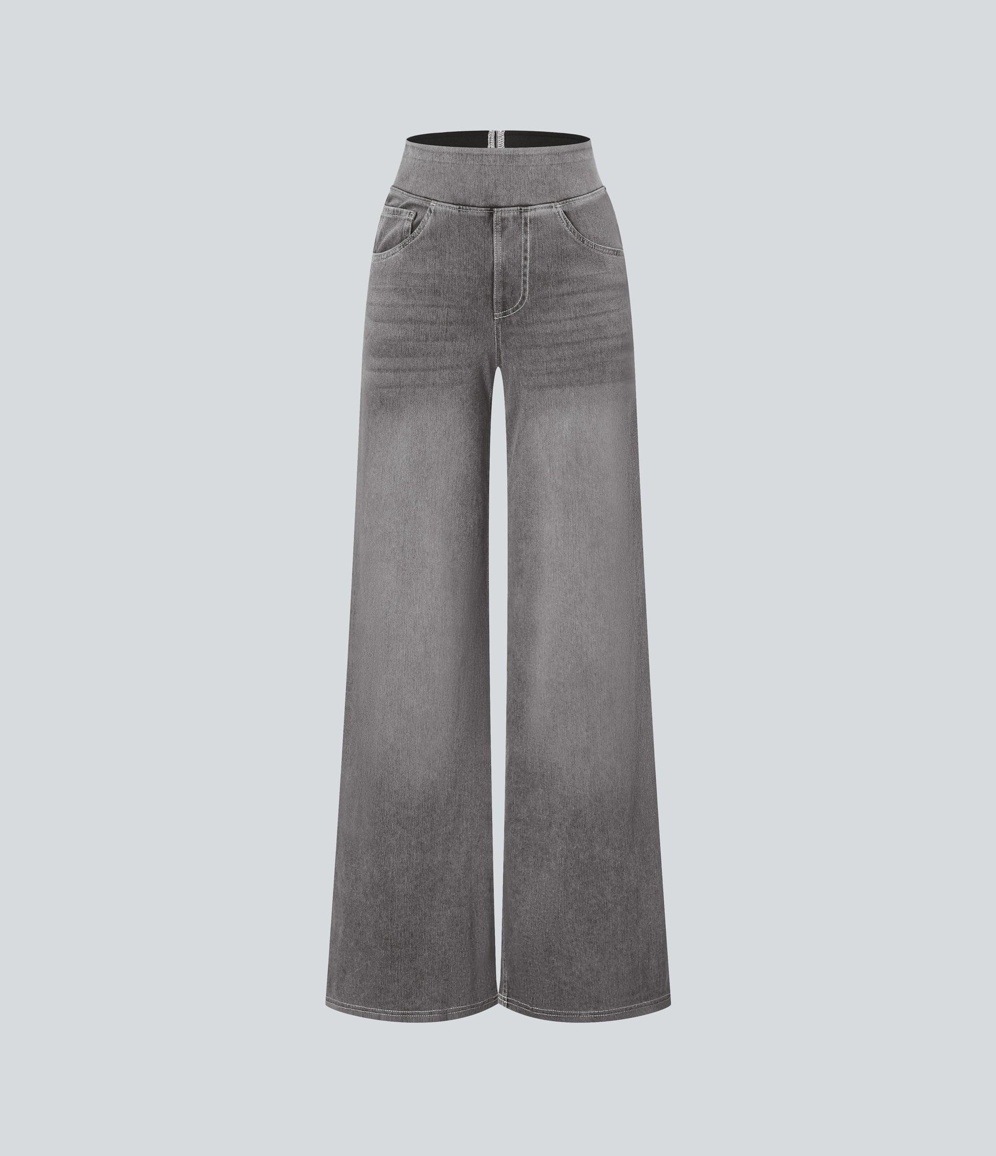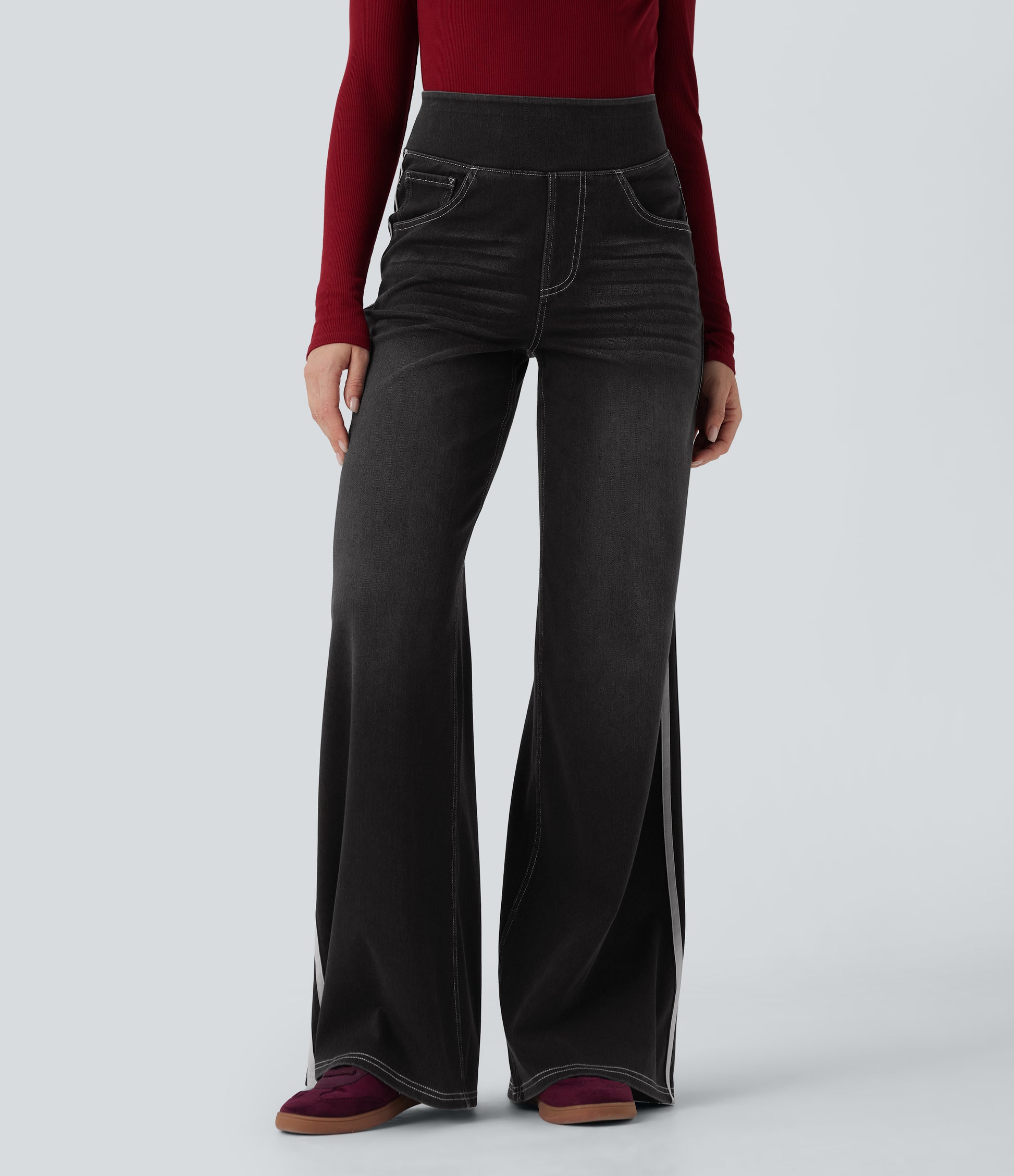 FYsuper-High Waisted Stripe Wide Leg Flowy Washed Casual Jeans with Pockets