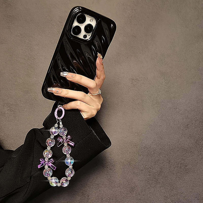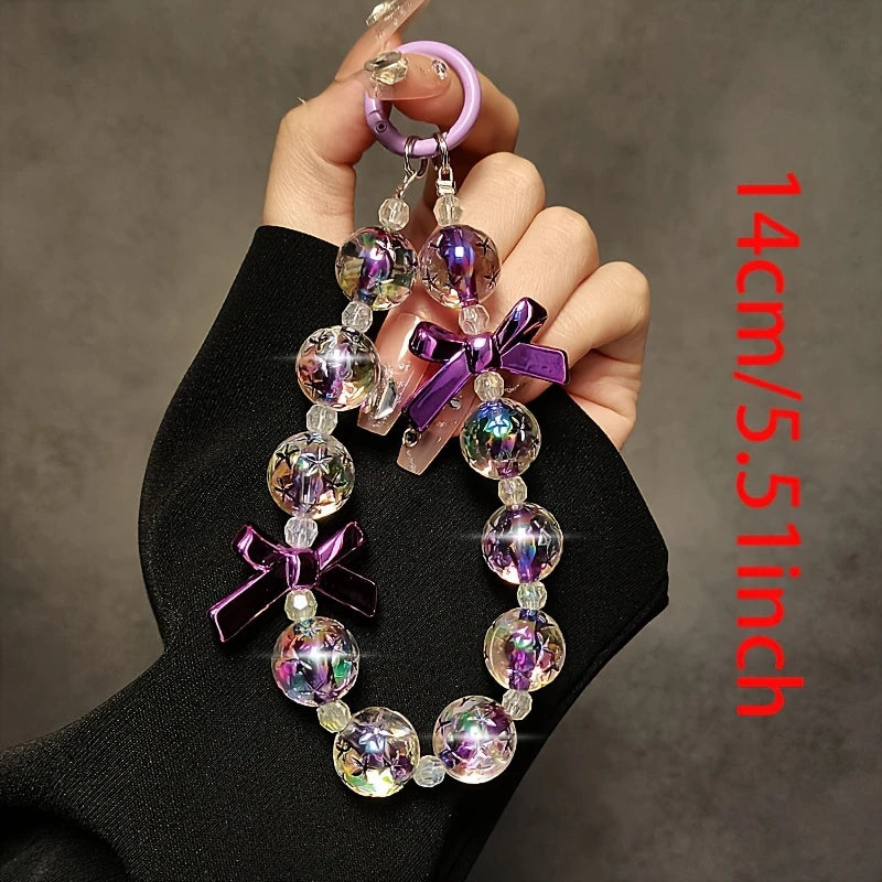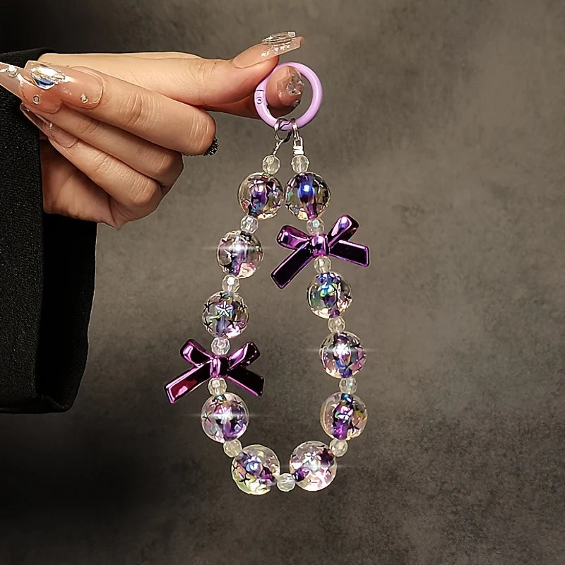 Purple Beaded Lanyard] Elegant Purple Beaded Phone Lanyard with Butterfly Bow Charm | Wrist Strap for Phone Cases, Bags, and Keychains | Perfect Gift Idea for Women