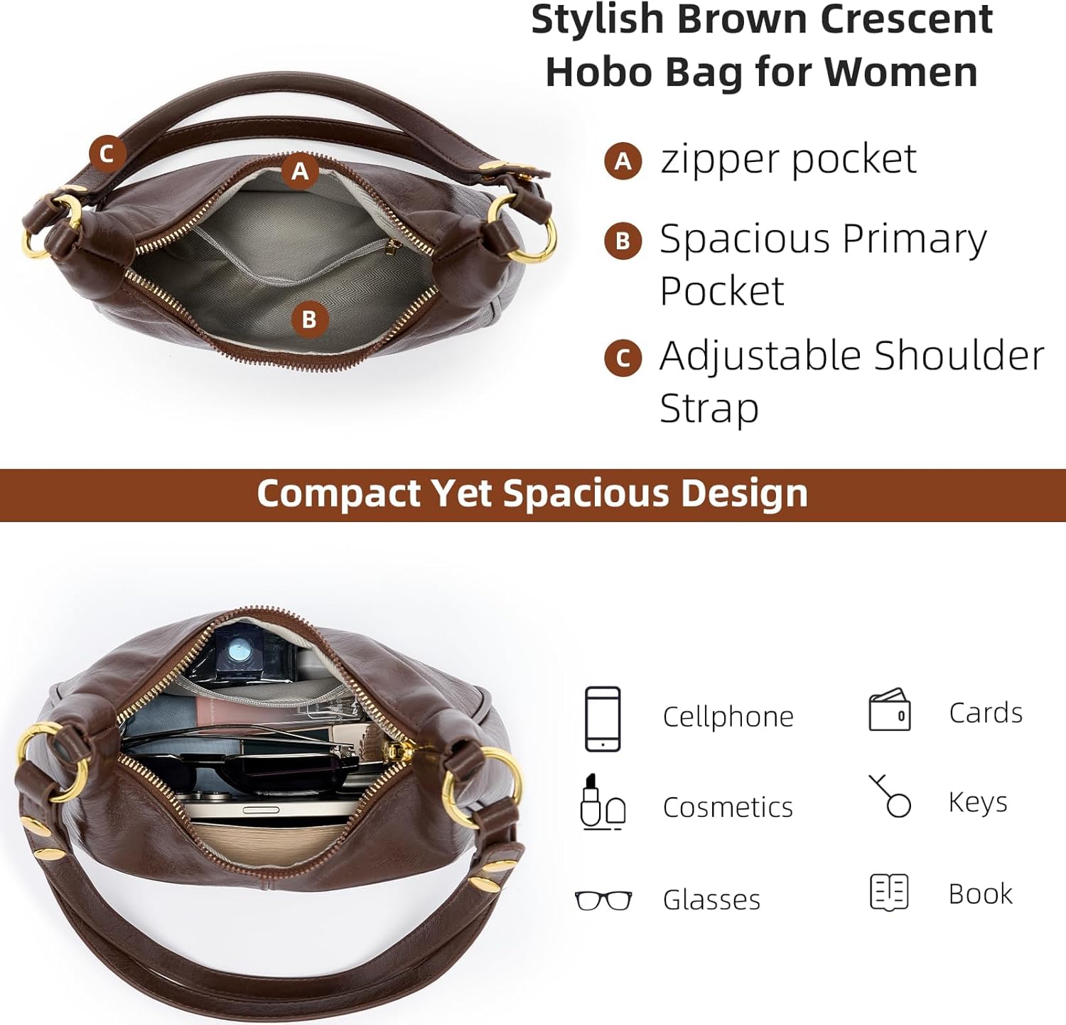 Shoulder Bags for Women Small Hobo Bags Crescent Shaped Cute Retro Tote Handbag Mini Clutch Purse with Zipper Closure